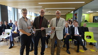 In Anerkennung ihrer herausragenden Verdienste um die Hochschule Aalen erhalten  Oberbürgermeister Thilo Rentschler und Carl Trinkl, ehemaliger Vorstandsvorsitzender der Kreissparkasse Ostalb, die Würde eines Ehrensenators.