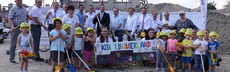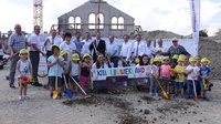 Mit einem Spatenstich beginnt der Bau der sechsgruppigen DRK-Kindertagesstätte „Lummerland“ auf dem Stadtoval.