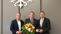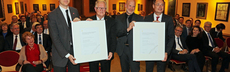 Die Geschäftsführer der Firma Kessler und Co. Gerhard und Manfred Grimminger werden für ihre Verdienste mit der Großen Ehrenplakette der Stadt Aalen ausgezeichnet.