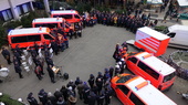 Fünf neu beschaffte Mannschaftstransportwagen werden an die Feuerwehrabteilungen Aalen, Dewangen, Ebnat/Waldhausen, Unterkochen und Wasseralfingen/Hofen übergeben.