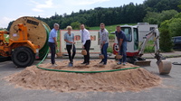 Mit einem symbolischen Spatenstich startet der Breitbandausbau für den Teilort Rauental. Die Gesamtkosen für die 300 Mbit Versorgung betragen 261.000 Euro, die Stadt Aalen erhält einen Landeszuschuss von 110.000 Euro.