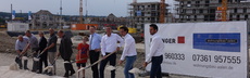 Die Investoren Essinger Wohnbau und Wohnungsbau Aalen geben mit einem Spatenstich den Startschuss für den Bau von 40 Wohnungen auf dem Stadtoval.