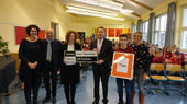 Am 23. April, Welttag des Buches, übergibt Oberbürgermeister Thilo Rentschler an elf Aalener Kindergärten je eine mit Kinderbüchern gefüllte „Vorlesebox“.